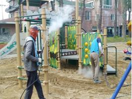 중구는 매년 총 2,000만원의 사업비를 들여 어린이와 보호자 모두 안심할 수 있는 청결한 놀이터를 위해 모래 살균 소독을 정기적으로 연 2회 실시해오고 있다.