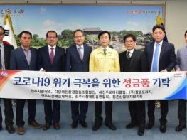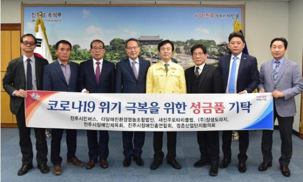재단법인 진주시복지재단은 지난 10일 오후 4시 진주시청 기업인의 방에서 코로나19 대응을 위한 지역사회 기관·단체들의 성금 및 성품 기탁식을 가졌다.