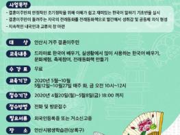 수강 신청은 오는 20일부터 다음달 8일까지 전화(031-409-1877) 또는 방문접수를 통해 신청하고 외국인등록증이나 거소신고증을 제출하면 된다.