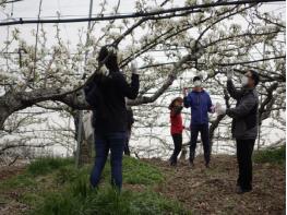인천시농업기술센터는 코로나19 장기화로 농촌 일손이 부족한 농번기인 4월 13일 직원 42명이 남동구 배 재배 농가들을 찾아가 배꽃 인공수분 일손 돕기를 실시했다.