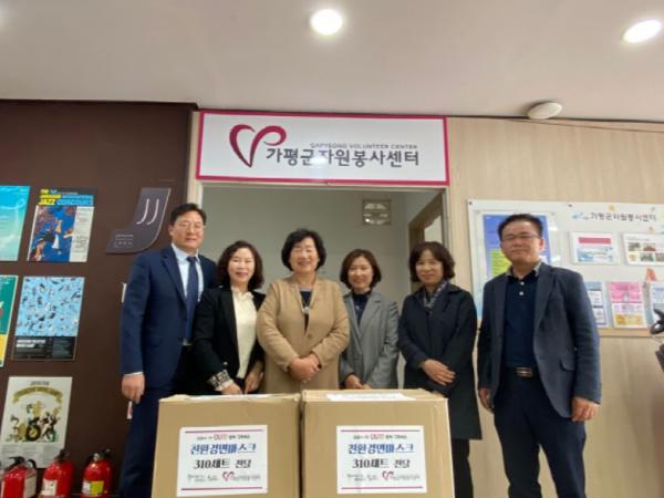 가평군 자원봉사센터에서는 10일 코로나-19 확산예방을 위해 어려운 여건 속에서도 묵묵히 일하고 있는 가평군 환경미화원 126명에게 감사의 마음을 담아 면 마스크 800장을 전달했다.