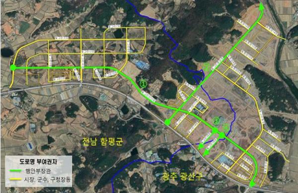 광역도로 외의 빛그린동로(광주)와 빛그린서로(함평) 등의 산단내 도로명은 관계기관 회의에서 협의한 도로명 부여 원칙에 따라 해당 지자체에서 확정·부여할 예정이다.
