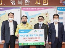 아산시(시장 오세현)는 4월 13일 NH농협 아산시지부로부터 NH농협 제휴카드 기금 1억 500만원을 전달 받았다.