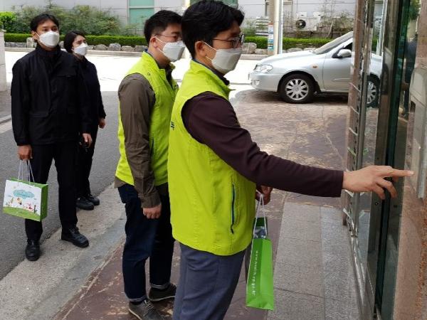 “안녕하세요. 자가격리중인 D씨 있으신가요? 저희는 은평구청에서 나왔습니다. 몸은 좀 어떠신가요. 불편한 곳은 없으시고요? 저희가 준비한 위생안심가방을 전해 드리려고 하는데 잠시 뵐 수 있을까요”