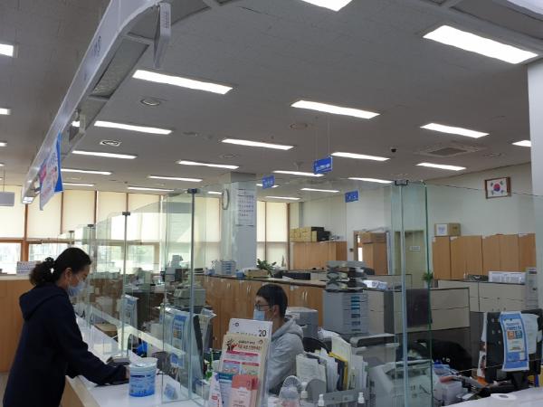 코로나19의 확산을 막기 위해 김포시 구래동행정복지센터(동장 임산영) 민원실에 투명 가림막이 설치됐다.