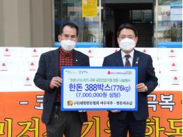 한돈협회 여수시지회(회장 김윤곤)는 지난달 30일 여수시청에서 코로나19 위기 극복을 위한 국민건강기원 한돈나눔행사를 통해 7백만 원 상당의 한돈 388박스를 여수시(시장 권오봉)에 전달했다.
