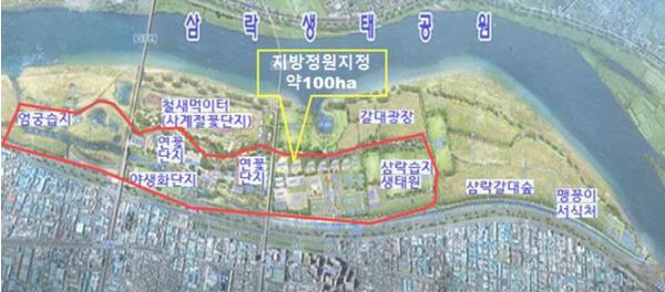 시는 삼락생태공원이 낙동강하구 둔치 중 가장 넓은 지역(4.72㎢)으로 습지생태원, 감전야생화단지, 갈대 및 갯버들 군락 자연초지의 다양한 자연환경과 생태 산책코스와 자전거 도로 등 기반시설이 잘 조성되어 있어 부산 제1호 지방정원으로 최적지라는 입장이다.