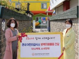 장성군이 어린이 급식소에 500만원 상당의 방역물품을 지원했다.