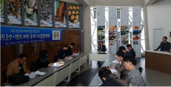(재)완도국제해조류박람회 조직위원회는 2021완도국제해조류박람회 개최를 위해 지난 4월 9일 해조류센터에서 회장 운영 및 이벤트 대행사 선정을 위한 사업 설명회를 가졌다고 밝혔다.