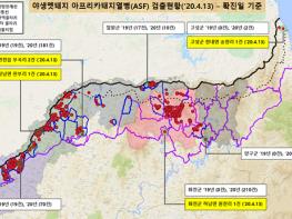 양성 폐사체를 지역별로 보면, 연천군 3건, 고성군 1건이며, 4월 11일 화천군 하남면 원천리에서 포획된 멧돼지 1건이 양성 확진되었다.