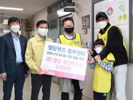 14일 자원봉사단체 ‘헬핑핸즈 동부센터’는 코로나19 극복을 위한 마스크 5,000매를 경기 사회복지공동모금회에 전달했다.