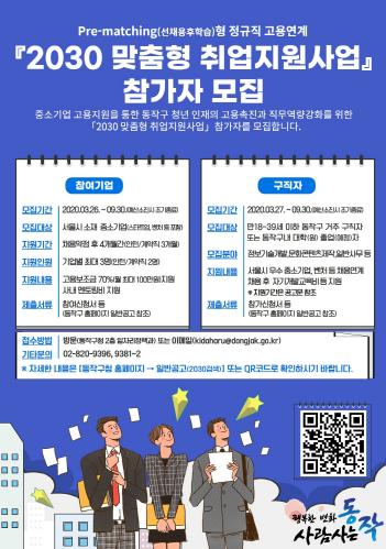 동작구(구청장 이창우)가 오는 12월까지 ‘2030 맞춤형 취업지원’ 사업을 추진한다고 1일 밝혔다.