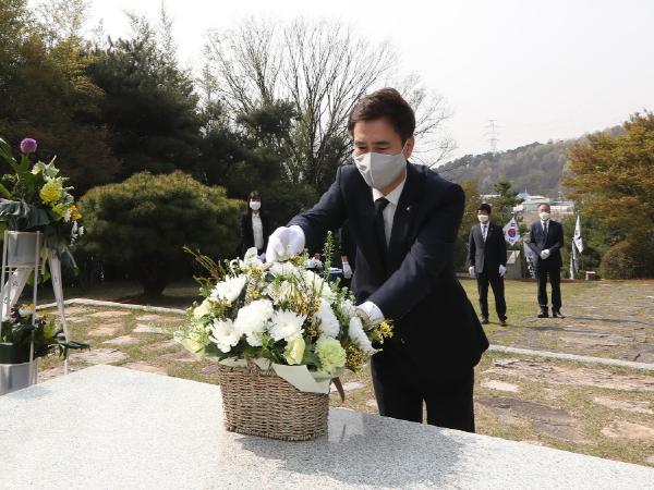 서 시장은 코로나19 여파로 취소된 추모제를 대신해 희생자에 대한 참배와 헌화로 순국선열들의 희생에 대한 아픈 역사를 기억하고 유공자들의 넋을 기렸다.