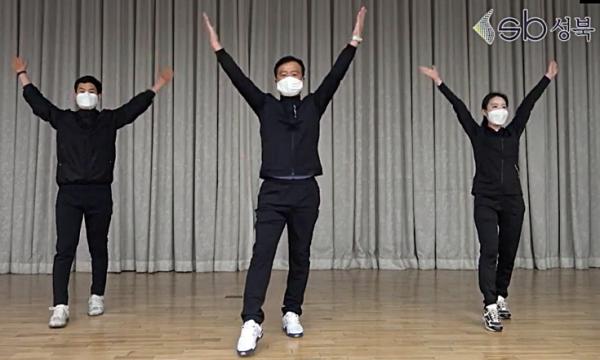 ‘집 콕 스트레스 훌훌 체조’는 성북구 직원들이 매일 아침 업무 시작 전 함께하는 ‘성북소통공감체조’를 활용했다.