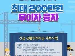 코로나19로 어려움을 겪는 건설 근로자에게 긴급 생활안정자금을 최대 200만원까지 무이자로 빌려줍니다.