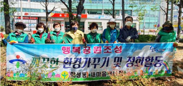 손정희 학성동 새마을부녀회 회장은 “하루 빨리 나무에서 꽃이 피어나 행복공원이 아름다운 꽃밭으로 변하기를 기대한다”라며 “매월 주기적으로 제초작업 및 환경정비 활동을 실시해 공원을 가꾸어 나가겠다”고 밝혔다.