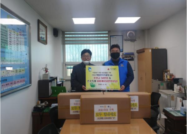 오산시 매홀로타리클럽회원 일동은 지난 14일 초평동행정복지센터(동장 정하철)를 방문해 코로나19로 어려움을 겪는 지역 주민들에게 작은 보탬이 되고자 후원금 50만원과 손소독제 500개(150만원 상당)를 기탁했다.