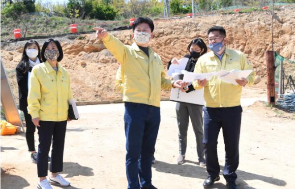 박태완 중구청장, 청소차량 주차장 조성공사 현장점검