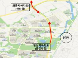 22시부터 다음날 오전 6시까지, 와동지하차도는 양방향, 한길지하차도는 금촌방향 차도를 전면 통제한다.