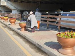 이번 꽃묘 식재 작업을 통해 퇴계원역 2번 출구를 중심으로 가로화분 43개가 약 10m 간격으로 배치되었다.