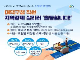 또한 구는 지역화폐 대덕e로움을 통한 소비촉진 강화를 위해 10% 특별할인 기간을 오는 6월말까지 연장하고, 사용자를 대상으로 한 ‘대덕e로움이 드리는 7가지 소비의 맛’이라는 SNS이벤트를 주·월 단위로 시행하고 있다.