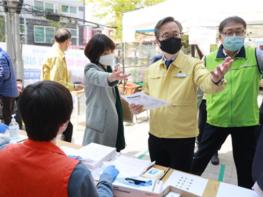 이날 현장점검에 앞서 유성훈 구청장은 독산4동에서 통장, 주민방재단, 자원봉사자 등과 함께 골목길 방역활동을 실시했다.