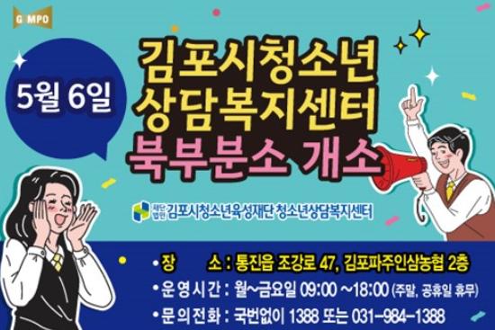 관내 청소년 상담의 접근성 향상과 청소년 상담 서비스의 균등한 제공을 위한 ‘김포시청소년상담복지센터 북부분소’가 오는 5월 6일 개소한다.