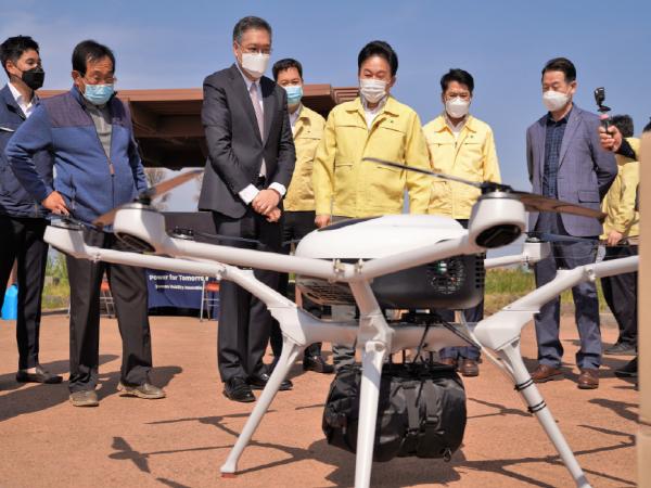 제주도는 ‘드론 실증도시 구축사업’ 고도화 추진의 일환으로 두산모빌리티이노베이션과의 협업을 통해 약국과 우체국이 없는 가파도, 마라도, 비양도 주민들에 대한 공적 마스크 배송을 추진했다.