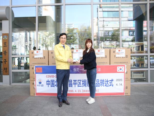 앞서 구는 2월 26일 중국에 있는 자매도시 창평구에 코로나19 극복에 힘을 보태기 위해 방진복, 의료용장갑, 보호경 등 기부물품을 서한문과 함께 보낸 바 있다.