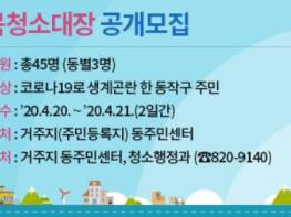 참여대상은 코로나19 감염병의 장기화로 인해 생활이 어려워진 만 19세 이상 동작구 주민 45명(동별 3명)이다.
