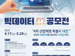 대전시와 (재)대전정보문화산업진흥원(이하 진흥원)은 ‘2020 빅데이터 분석 및 아이디어 공모전’을 개최한다고 17일 밝혔다.