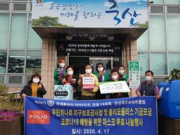 안성죽주로타리클럽이 17일, 죽산면사무소를 방문해 코로나19 극복을 위해 마스크 200장을 전달했다.