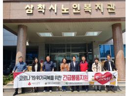 삼척시노인복지관에서는 강원도노인복지관협회(협회장 이영신)와 코로나19 위기극복을 위한 긴급물품지원 전달식을 가졌다.
