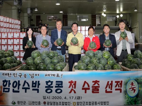 함안군 전문원예수출농단인 광일영농조합법인(대표 박분연)은 17일 오전 11시 올해 첫 함안수박 홍콩 수출 선적을 실시했다.