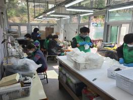 이번 면 마스크 제작은 보건용 마스크 구매가 어려운 중증장애인을 돕기 위해 부산시에서 마스크 원단과 필터를 지원하고, 새마을부녀회가 재능기부를 통해 마스크를 제작하기로 결정하면서 시작됐다.