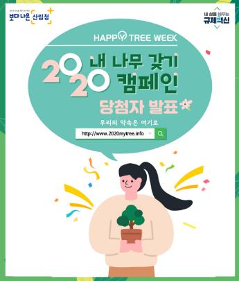 당첨 여부는 17일 13:00에 캠페인 누리집(www.2020mytree.info)에서 확인 가능하며 당첨자에겐 당첨 문자가 발송된다.