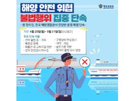 해양경찰청(청장 김홍희)은 봄 행락철 선박 이용객이 많은 시기에 국민의 해양안전을 위협하는 불법행위를 오는 4월 20일부터 5월 31일까지(42일간) 집중 단속한다고 17일 밝혔다.