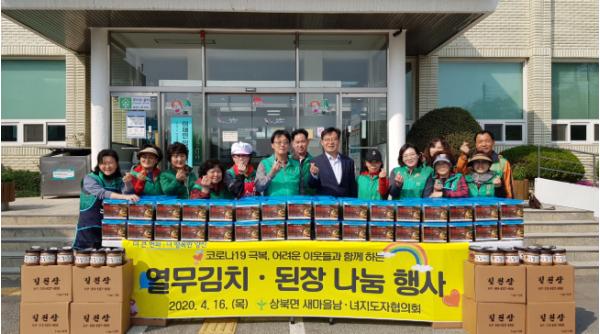 양산시 상북면 새마을지도자남?녀협의회(회장 유명재, 이미주)는 지난 16일 상북면행정복지센터에서 회원 20여명이 참여한 가운데 코로나19로 어려움을 겪고 있는 이웃들과 사할린 동포를 위한 열무김치 5kg 150박스와 된장 150통 나눔 행사를 가졌다.