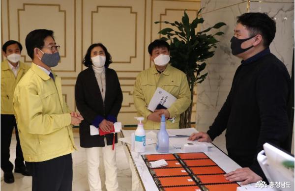 코로나19 예방을 위해 강화된 사회적 거리두기 운동을 전개하고 있는 가운데, 양승조 충남지사가 집단 감염 위험이 높은 다중이용시설을 찾아 현장을 점검했다.