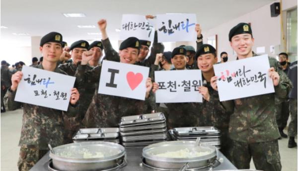 한편, 5군단은 최근 포천 사과 구매, 지역 화초 구매 등을 통해 지역경제 돕기에 앞장서고 있다.