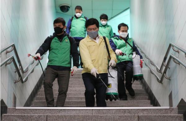 황인호 동구청장은 17일 새마을협의회 주관 대동역 코로나19 방역소독 및 대동오거리 일원 선거벽보 정리 등 환경정화활동에 동참했다.