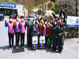 영월군자원봉사센터(센터장 심재섭)는 2020년 4월 13일 오후, 생활개선영월군연합회(회장 박옥순) 회원들과 김삿갓면 일대 다중이용시설 및 상가(35개소)를 방문해 코로나19 확산 방지 소독방역 봉사 활동을 펼쳤다.
