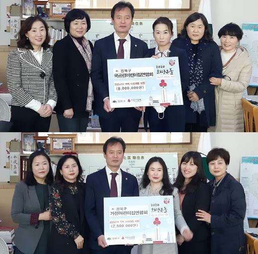 강북구(구청장 박겸수)가 지난 4월 14일 강북구 국공립어린이집(회장 한명숙)·가정어린이집(회장 연현숙)연합회와 함께 코로나19로 인해 어려움을 겪고 있는 지역에 힘을 보태고 응원의 마음을 전하고자 성금 전달식을 가졌다.