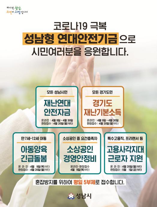 성남시는 4월 20일부터 50개 동 행정복지센터에도 성남형 연대안전기금 신청을 받기 시작했다.