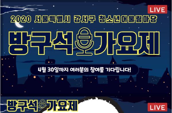 서울 강서구(구청장 노현송)는 코로나19로 인한 사회적 거리두기로 답답하게 지내고 있는 청소년들에게 끼를 발산하고 스트레스를 풀 수 있도록 ‘방구석 가요제’를 연다고 밝혔다.