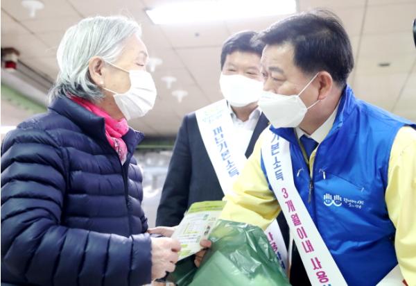 박 시장은 이날 오후 소상공인협회, 공무원 20여명과 함께 재난기본소득 조기사용을 위한 거리캠페인을 벌였다.