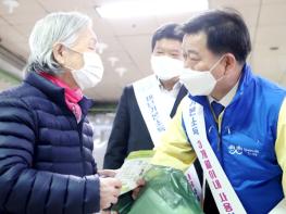 “재난기본소득 빠른 신청, 소비가 곧 착한 소비입니다!” 박승원 광명시장은 20일 철산역에서 시민에게 이같이 당부했다.