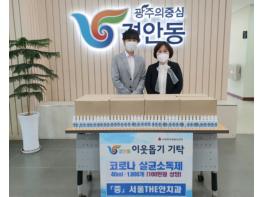 광주시 경안동에 있는 서울THE안치과(원장 안교진)는 지난 16일 경안동행정복지센터를 방문, 코로나19의 지역사회 확산방지 및 저소득층을 위해 써달라며 살균소독제 1천개(40㎖·100만원 상당)를 기탁했다.