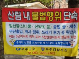전라북도 무주군은 산림자원 보호를 위해 오는 5월까지 임산물 불법채취 방지를 위한 캠페인과 집중 단속을 추진한다고 밝혔다.