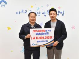지난 20일 청계산의 아침(대표 명득선)에서 코로나19 취약계층을 위한 예방성금 1,000만원을 양평군에 전달하였다.